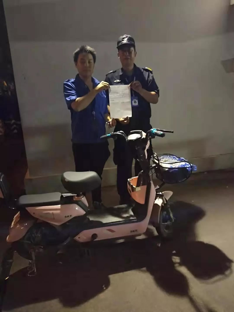 10月9日隊(duì)長(zhǎng)馬俊凱發(fā)現(xiàn)一輛電動(dòng)車的鑰匙忘記拔,發(fā)現(xiàn)后對(duì)該車輛進(jìn)行了妥善保管,避免車輛丟失。車主為感謝中山保安公司保安人員助人為樂(lè)的雷鋒精神,特致以感謝信!